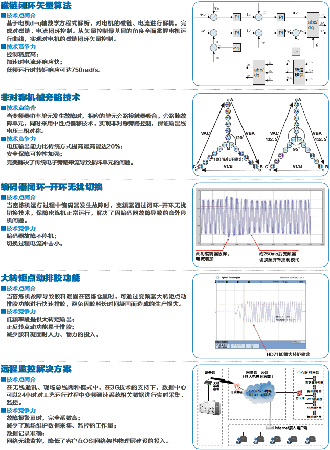 匯川技術致力于高性能高壓變頻器的探索,秉承對行業工藝的深入理解和對技術的極致追求,我們為橡膠行業帶來了全新的HD71密煉機專用高壓變頻器。HD71具備磁鏈閉環矢量算法、非對稱機械旁路技術、編碼器閉環-開環無擾切換、大轉矩點動排膠功能、遠程監控解決方案等優點,提高密煉機生產效率的同時降低能耗。大型傳動先鋒,共享卓越性能。