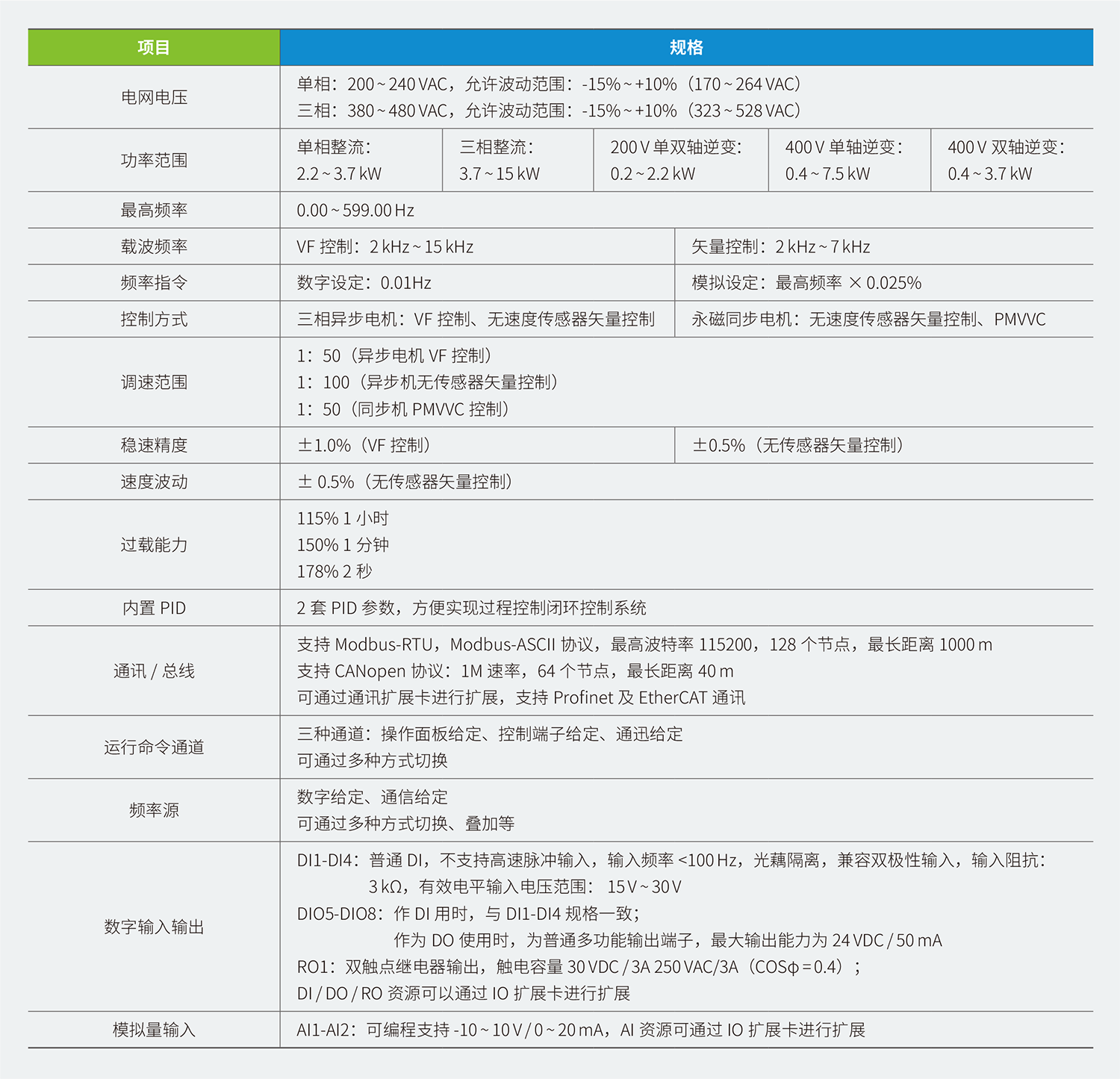 內置CANopen、CANlink、Modbus-RTU通訊,支持PN、EtherCAT、EIP高速總線擴展